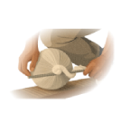 將茶葉包在布包裡,壓實轉圈,揉成球型。